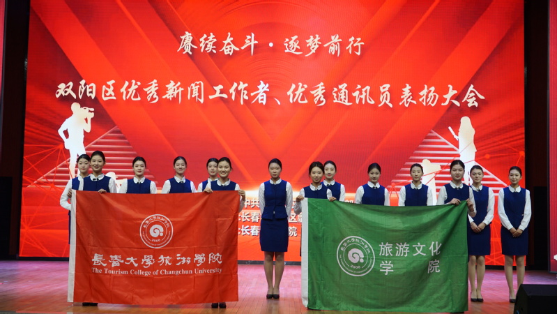 为进一步推进学习贯彻习近平新时代中国特色社会主义思想主题教育,传承和践行“奉献有爱互助进步”的志愿服务精神,旅游文化学院应双阳区旅游服务中心邀约,积极组织、选拔、培训了16名学生志愿者前往长春市双阳区为“赓续奋斗逐梦前行”双阳区优秀新闻工作者、优秀通讯员表扬大会提供志愿服务。