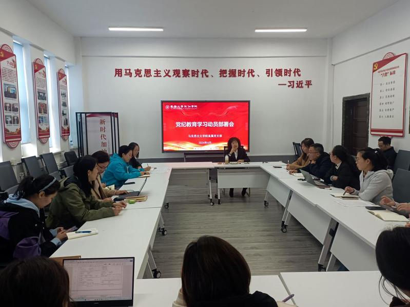 4月15日,马克思主义学院直属党支部召开党纪学习教育动员部署会,传达贯彻中央党建工作领导小组会议精神、《中共中央办公厅关于在全党开展党纪学习教育的通知》精神和学校党委相关部署要求,安排部署党纪学习教育工作。本次会议由支部副书记魏娇主持,支部全体党员参加。