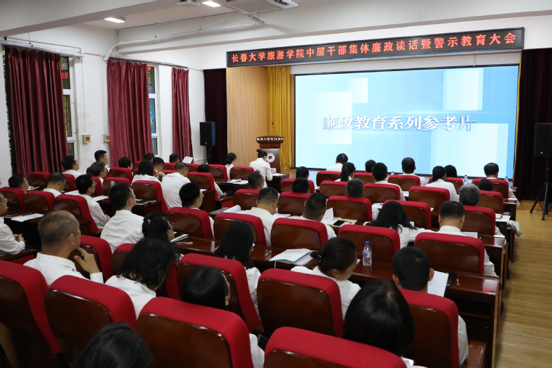 为持续推进党纪学习教育走深走实,落实省教育厅《关于开展教育领域群众身边不正之风和微腐败问题集中整治工作的通知》要求,进一步筑牢学校党员领导干部拒腐防变思想防线,6月24日下午,学校纪委在筑梦报告厅召开中层干部集体廉政谈话暨警示教育大会。校长刘耀辉、党委书记范琳琳以及学校领导班子成员、全体中层干部参加会议。会议由党委副书记高阳主持。