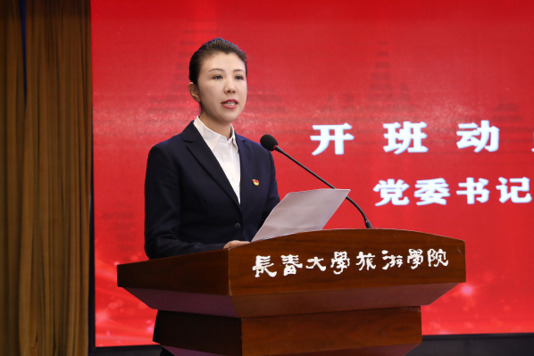 开班仪式在庄严的《中华人民共和国国歌》声中拉开帷幕。范琳琳作开班动员讲话,她从基层党组织如何重视和加强二级党校建设、党务干部群体如何强化党员教育培养、参训学员如何端正学习态度三个维度分别提出工作要求。同时,对参训学员提出“三要三做”的殷切期望,一要高举信仰火炬,做初心如磐的追光者;二要锤炼党性修养,做知行合一的笃行者;三要勇担时代使命,做攻坚克难的奋斗者。她希望学员们通过本期培训,开启一场充实而又意义非凡的党性“充电”之旅,真正把对党的向往融入思想深处、化为行动自觉,把个人成长融入学校各项事业发展建设中,在新时代新长旅改革创新发展的新征程中书写出无愧于时代、无愧于青春、无愧于自己的青春华章,为吉林全面振兴取得新突破贡献长旅智慧与力量。