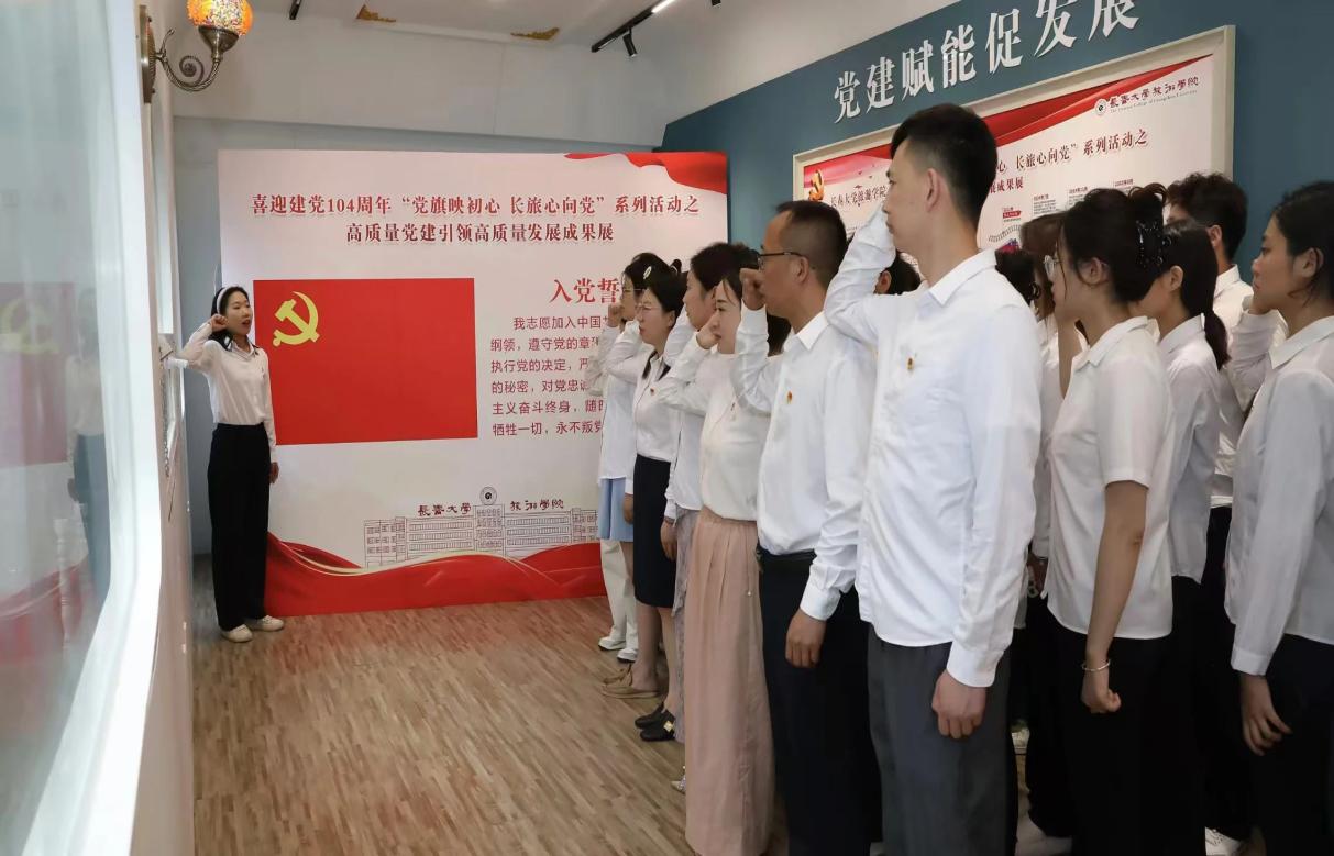活动尾声,在学生第一支部书记马双的带领下,全体党员面向鲜红的党旗,庄严地举起右手,重温入党誓词。一句句铿锵有力的誓言,在车厢内久久回荡,表达了党员们对党的忠诚和为党的事业奋斗终身的坚定决心。