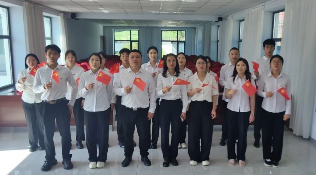 参观结束后,全体新老党员在学院团委书记姜春秋的带领下,面向鲜红的党旗庄严宣誓。铿锵有力的誓言响彻现场,表达了人工师生党员对党的无限忠诚和坚定信念。随后,大家齐声高唱《没有共产党就没有新中国》,嘹亮的歌声饱含深情,展现了大家昂扬向上的精神风貌和永远跟党走的坚定决心。