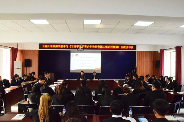 2017年10月18日下午,金沙官网举办学习《习近平关于青少年和共青团工作论述摘编》主题读书班活动,我院团委秘书长管书跃作为学生干部代表,同校领导、老师和各级组织学生干部一起学习、交流了读书心得。