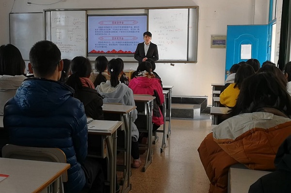 为全面落实党的十九大精神,积极响应教育部全国学生资助管理中心和省教育厅有关文件要求,外国语学院、国际交流学院在党总支书记于刚、分团委书记孙野及辅导员的指导下,获资助学生寒假返乡回高中母校开展国家资助政策宣传活动。在倡导受助学生积极践行社会责任、充分发挥政策传播与励志引领作用同时,也让家庭经济困难学生及时、充分了解党和国家的资助政策,鼓励困难学生奋发学习。