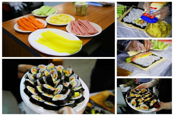比赛分为三个环节:抢食材、制作紫菜包饭、评审团品尝打分,分别考验了学生们的团队协作能力、应变能力及创新创意能力。评审团从制作的数量、外观、口感、创意、协作能力打分,最终获得一等奖的团队是“我们做的”队。
