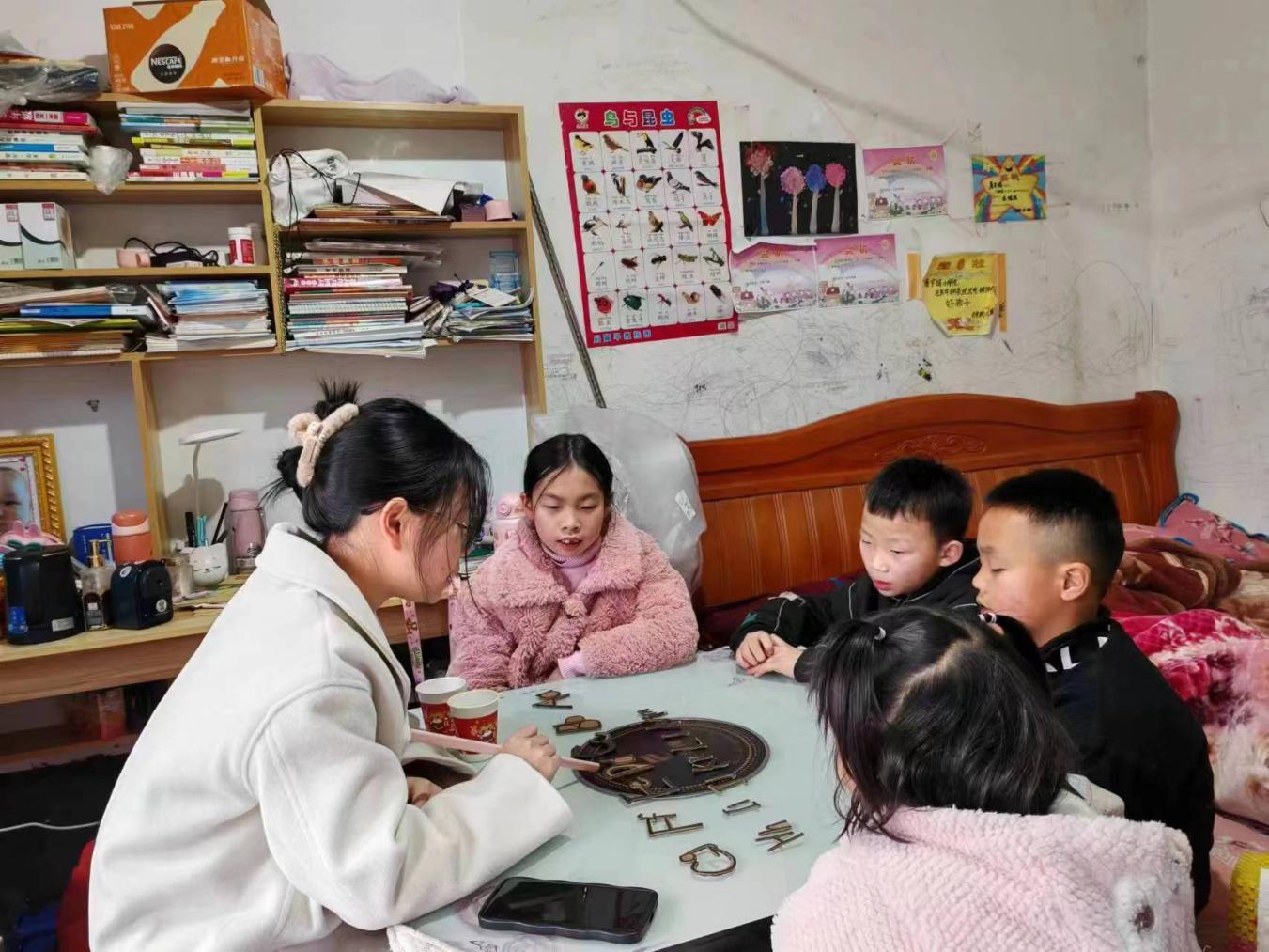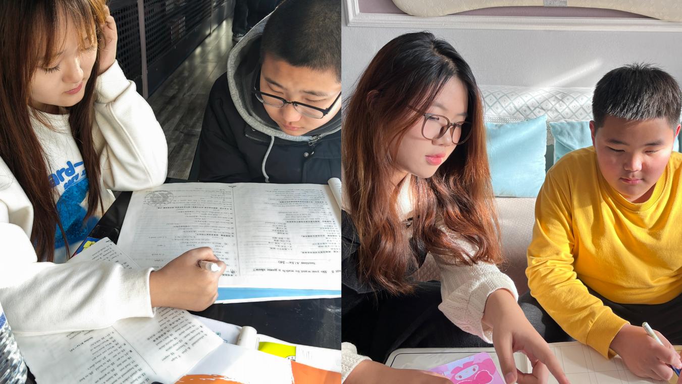 ▲志愿者线下辅导学生