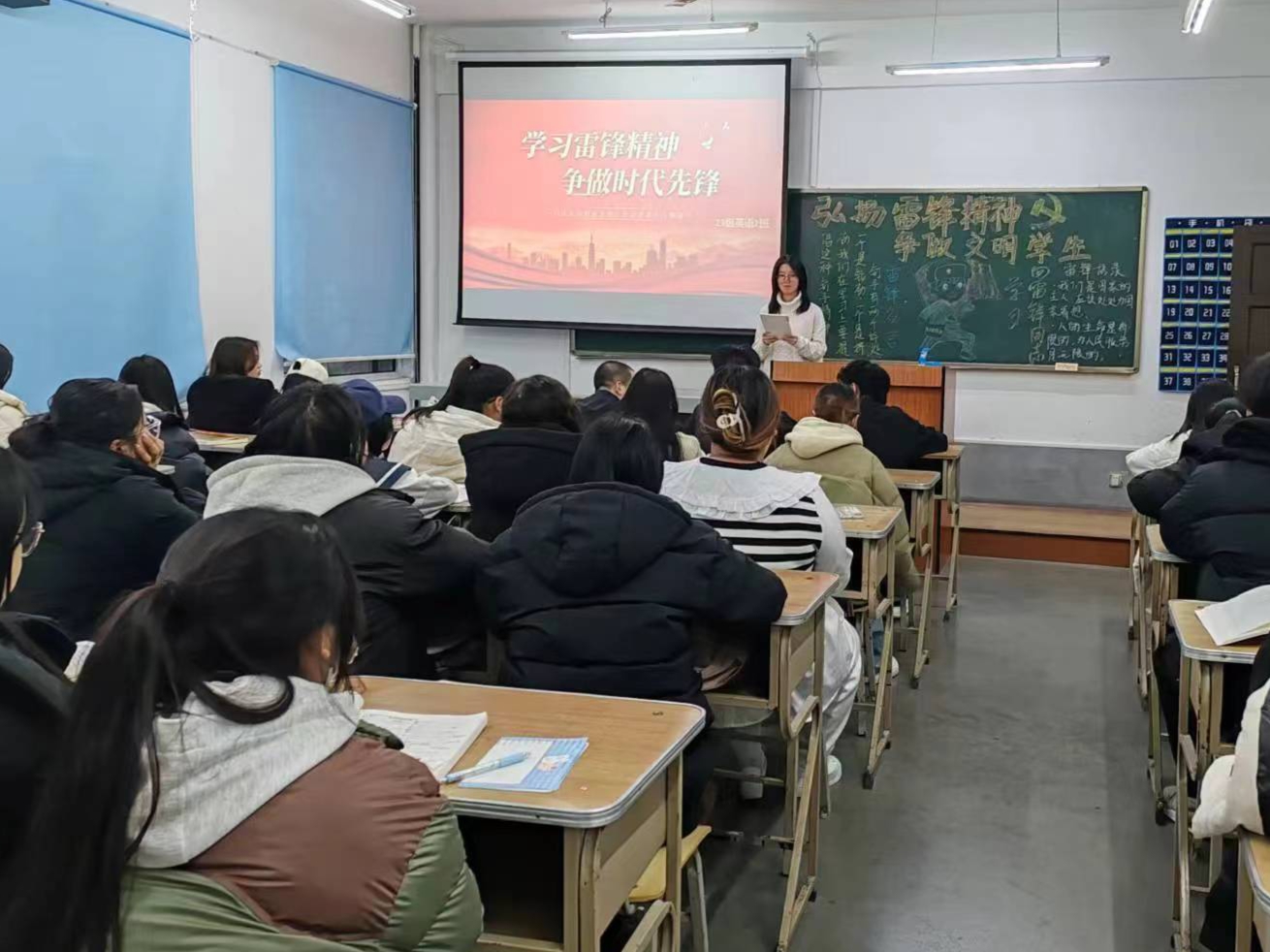 春风送暖,“锋”华正茂。为学习贯彻习近平总书记关于弘扬雷锋精神的一系列重要论述,扎实有效地推进素质教育,加强学生道德教育,引导广大青年宣传弘扬雷锋精神,自觉践行社会主义核心价值观,值此第61个全国学雷锋纪念日来临之际,外国语学院、国际交流学院开展“弘扬雷锋精神—让青春在奉献中绽放”主题团日活动,学院23个团支部参与。