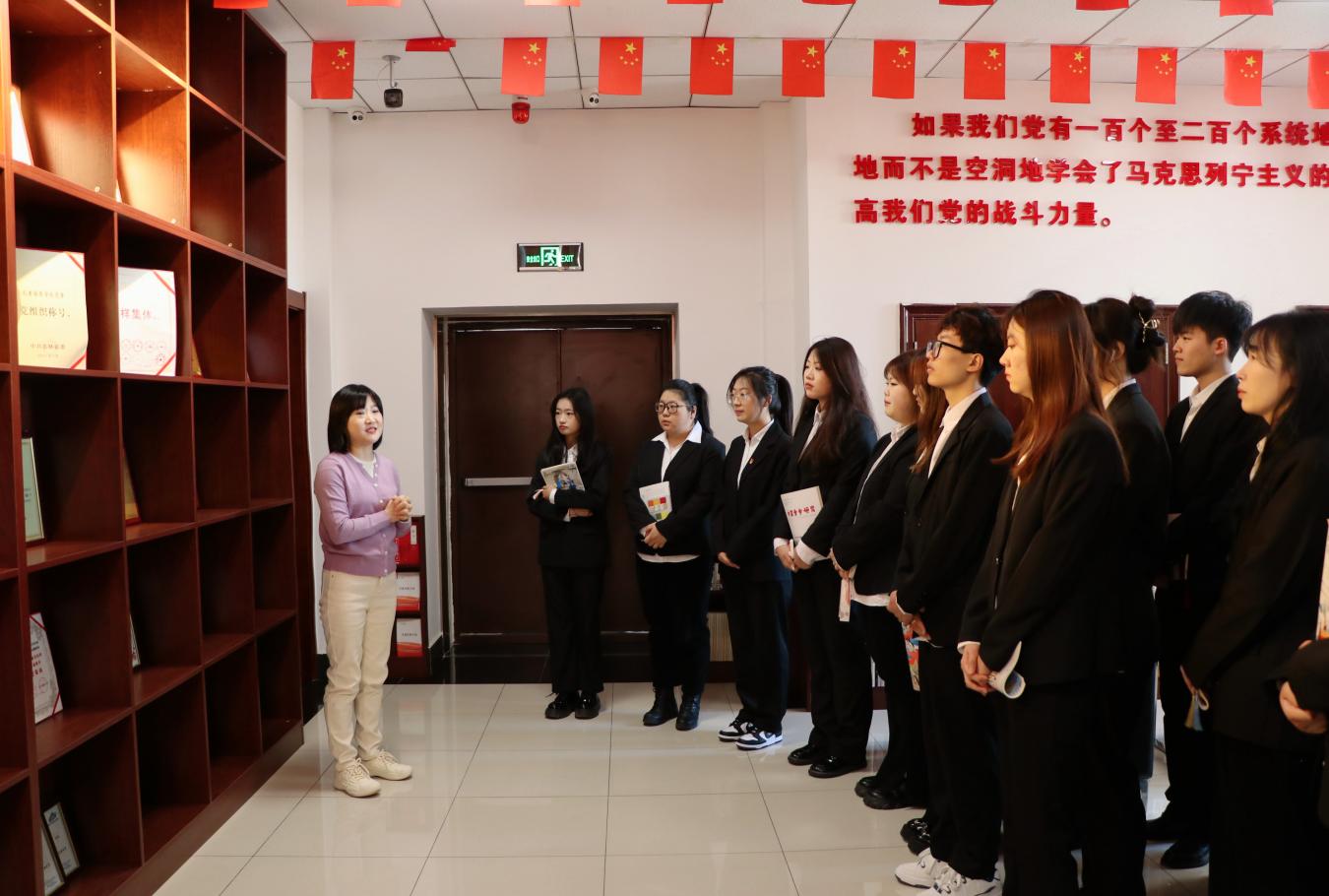 为进一步弘扬中华优秀传统文化,增强师生文化认同感,全面提升思想政治素质,坚定理想信念,强化责任担当,精心上好“开学第一课”,3月7日,外国语学院、国际交流学院23级辅导员郑雨佳带领30名学子赴长春中医药大学“杏林青马工程”研究基地参观学习,长春中医药大学青年马克思主义者培养学院综合部主任陈竞博热情接待了我院师生。
