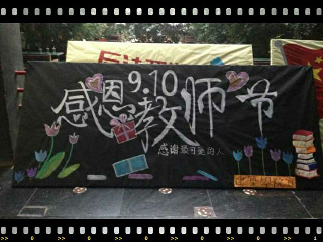 本次庆祝活动由学团组织精心策划,活动宗旨让大家打开心灵之窗,缩短心与心的距离。各组织会提前将画好的展板放在教学楼门楼,一大早赶在学校班车到来之前2015级新生就从大门口开始到教学楼门口夹道欢迎。老师们走在红毯上,两边都是同学们的掌声和欢呼声。看着老师脸上满满的笑容,同学们的欢呼声也越来越大,真正的做到了与老师的和睦相处,关心老师,尊敬老师。学团组织也在上课的第一时间,把鲜花和祝福送到了导员那里,所有班级同在老师上课的时候都会送去祝福,温暖老师的心房。