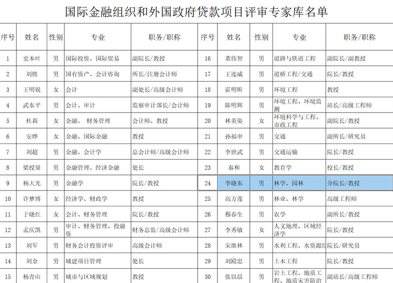 此次入选专家库是对李晓东教授在林学、园林领域成就的充分肯定和信任。李晓东教授表示在聘任期间将按照有关规定和工作安排认真履行职责,将不遗余力为我省国际金融组织和外国政府贷款备选项目评审工作中发挥自身专业技术优势,完成好各项工作。