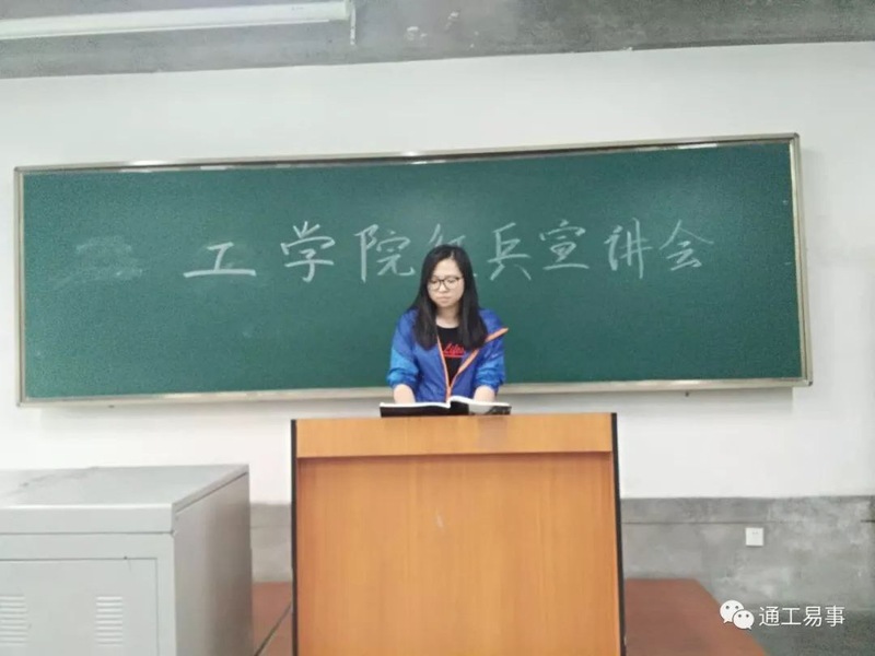 为了响应国家征兵政策,激励我院学生爱国激情,同时鼓励广大大学生积极参军入伍,投身我国国防事业。我院辅导员李菁老师于5月31日,在教学楼举行了征兵宣讲会。我院全部学生参与了此次征兵宣讲活动。