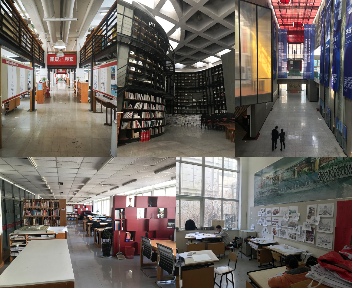 图4 沈阳建筑大学建筑与规划学院专业教室、图档中心和建筑馆内景