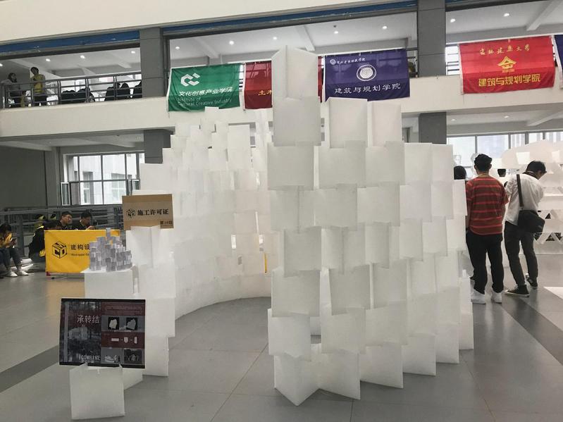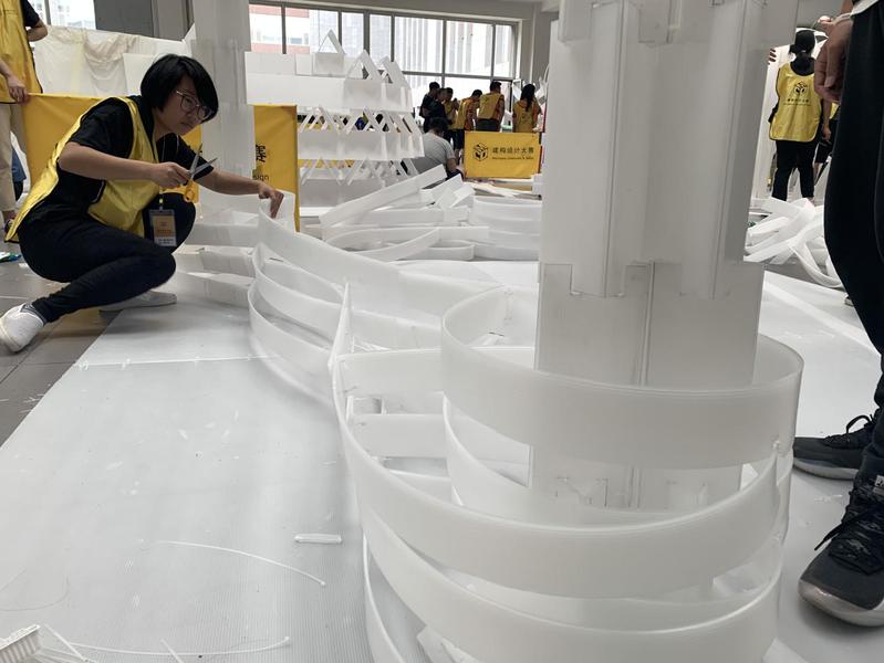 整个比赛准备历时一个多月,经过策划方案、方案筛选、确定方案、制造模型、实体搭建等环节。最终,在24、25日参赛队伍对模型进行裁剪和切割,26日对模型进行最后的搭建并由专家组成员进行评选打分。在整个过程中,同学和老师们都投入了极大的热情,多少个不眠不休的夜晚,多少次反反复复的实验,在经过了数不清的失败与意外之后,最终22件作品成功地搭建起来。