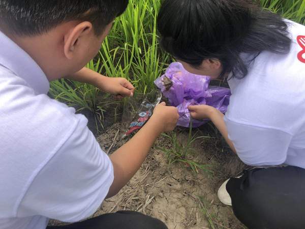 随后,实践团队一行对当地化肥厂、卫生站、生态园区进行参观考察。志愿者们对当地水田、旱田、大棚的土壤、河水、井水、自来水分别进行采样收集,送到有关部门进行检测、形成农作物适宜生长元素报告。