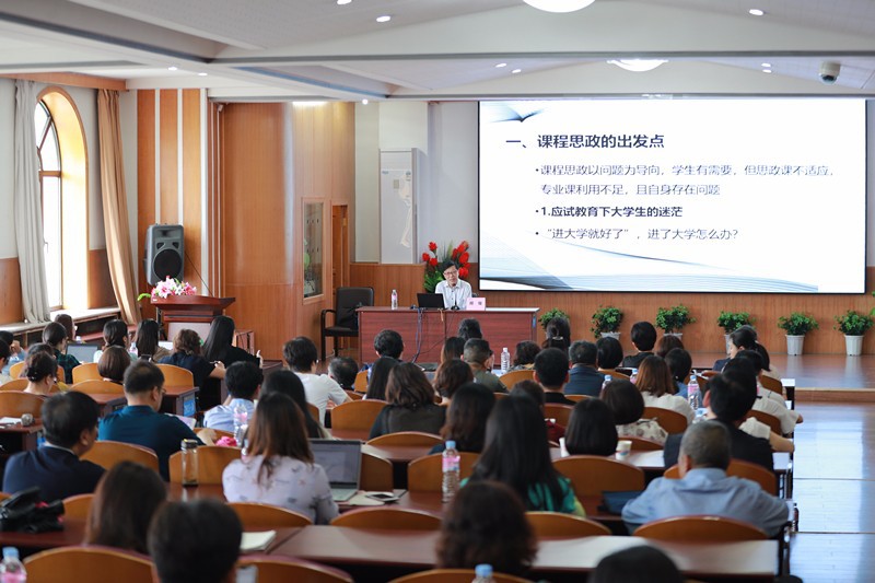 上海市课程思政教学科研示范团队“顾骏团队”主持人、上海大学社会学院顾骏教授在题为“课程思政的理念与设计”的报告中,把课程思政的理念总结为一个点,即“引导大学生在国家发展和个人前途的交汇点上思考人生”。他结合“大国方略”公开课课例,围绕课程思政的出发点、课程思政的基本定位、课程思政与思政课程的关系、课程与思政如何对接、课程思政转化要点、课程思政设计的技巧等方面,作了精彩讲解。