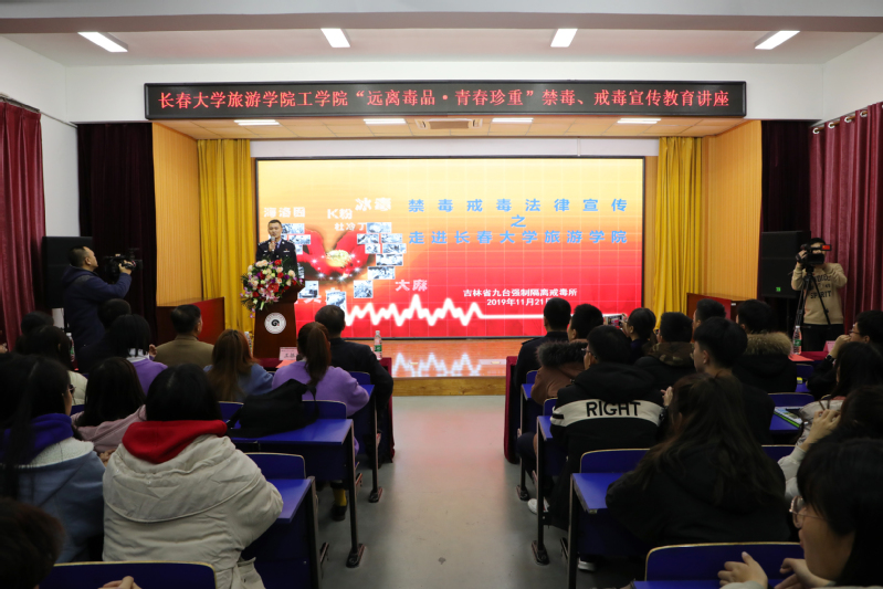 为贯彻落实习近平总书记关于禁毒戒毒要坚持关口前移,预防为主,重点针对青少年,深入开展毒品宣传教育的指示精神。11月21日,由吉林省司法厅组织宣传教育处、学校党委宣传部主办,吉林省九台强制隔离戒毒所、我院承办的“远离毒品·青春珍重”禁毒戒毒宣传教育讲座在学校筑梦报告厅举行。吉林省九台强制隔离戒毒所机关党总支书记张云鹏,二大队副大队长王振源,二大队副大队长、团委书记杨泽宇,学校党委副书记、副校长马维东,党委宣传部部长侯淼,我院院长李晓东出席活动。活动由我院党总支书记凤龙主持。