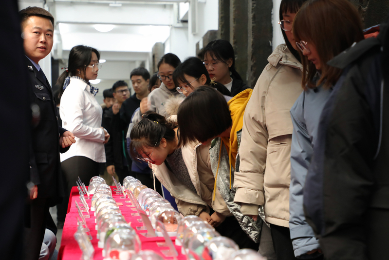 活动现场,吉林省九台强制隔离戒毒所二大队副大队长王振源警官通过展示禁毒宣传资料、仿真毒品、现场解答等形式,向广师生普及禁毒法律法规、禁毒基本常识和毒品的危害,并呼吁大家支持禁毒工作、参与禁毒工作,共筑社会禁毒防线。学生们积极踊跃学习,并掌握禁毒政策与法律法规等预防毒品的相关知识。