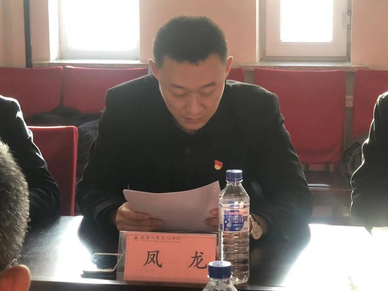 根据学校党委部署安排,12月5日下午,学院召开“不忘初心、牢记使命”专题民主生活会。党总支书记凤龙主持专题民主生活会,党总支组织员、团委书记王磊、教工党支部书记于凯、学生党支部书记李露赢参加专题民主生活会。主题教育第三指导组组长校团委书记贾烊到会督导。