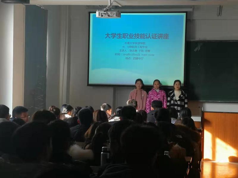 为了帮助我院学子了解大学生职业技能认证考试考试流程,以及帮助学生更快拿到职业技能认证书,2019年12月5日中午,由我院物联网工程专业举办的大学生“有所为,有所不为” 的职业技能认证专题讲座成功举办。