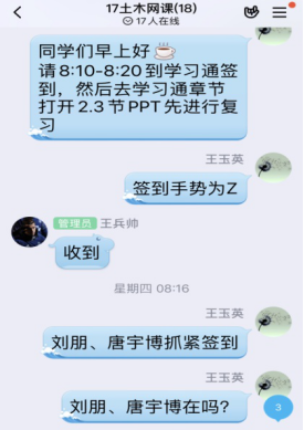 在教学活动开展中,要严格强调线上课堂纪律,告知学习要求,线上授课决不是简单的让同学自行看视频。我实施的 “妙招 ”如下: