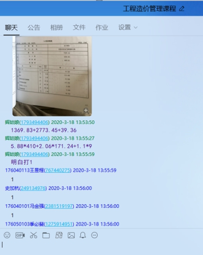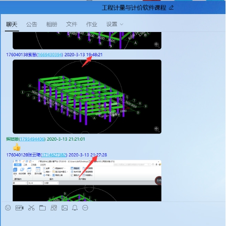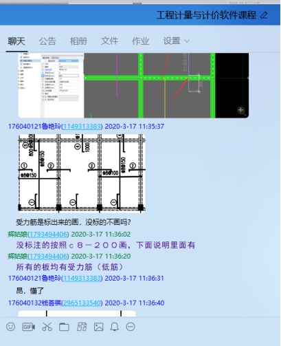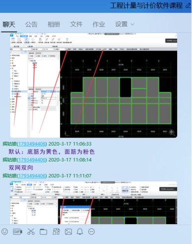 比如工程计量与计价软件应用课程,是一门实操性较强的课程,此类课程强调学生的实操性,所以在直播教学过程中,我会将重点操作截图发送至QQ群里,以便学生课后画图时查阅。