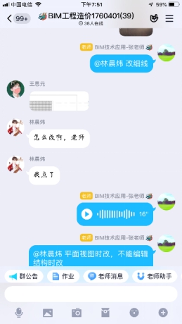 面对重大疫情,金沙官网按照教育厅要求推迟学生返校时间,实施网络授课。从学习网络平台的功能,到课程资源的准备、调整、资料上传与更新,再到正式网络授课,《BIM技术应用》课程已经完成了三周的教学工作,期间不断向平台技术人员和金沙官网优秀教师学习网络教学方法,与学生进行沟通、交流,完善教学手段,在这个特殊时期,师生在不同的空间,相互配合,逐渐适应新的授课方式,也为教学改革和课程建设提供了新思路。