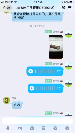 《BIM技术应用》是在机房完成的实践课程,比起理论课程,更加强调学生与教师的有效交流,如何通过在线授课保证教学信息准确清晰传达,是课程准备过程中重点考虑的内容。实践课程分为两部分,一部分是教师软件操作和授课过程,另一部分是教师指导学生实践过程。“同步课堂”“QQ群投屏”等直播授课方式,与学校机房的同屏授课方式相近,通过网络平台进行讨论、提问、抢答等课程活动,能突出课程重点,强调知识点的应用。但是技能训练不能通过“听”或“看”来完成,需要操作才能得到落实,接受相同课程信息的学生,操作进度和遇到的问题却是不同的,如果单独使用直播课指导,就很难高效的完成教学任务,所以《BIM技术应用》课程中软件操作环节,同时使用录播和直播。具体方法是课前备课将操作案例分段录制视频,分时段上传网络平台,学生在建模训练中,根据自身情况可以反复观看教师的操作过程解决大部分问题,共性问题直播指导,个别问题用QQ群指导,直播与录播同时使用、合理配合,使得教师能将信息有效地传达给学生,完成远程实践指导。
