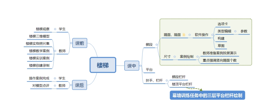 根据本课程特点,对知识进行结构化处理,以具体建模任务承载软件功能训练,把知识点合理分散到绘制任务中,替代单独的软件工具训练,学生通过完成案例中分解出来的工作任务,达到训练软件应用技能的目的,重点技能通过补充任务进行加强。教师在授课之前做好任务选择和知识点、技能点的对接。例如以“工程实验楼案例”为任务载体,学生根据课程内容逐步完成实验楼的创建,每次课程结束后都有可评价的成果,学生在明确技能训练点的情况下,带着任务上课,使学生对学习结果产生一种积极的期待,激发学生的学习动机、推动学生学习积极性。