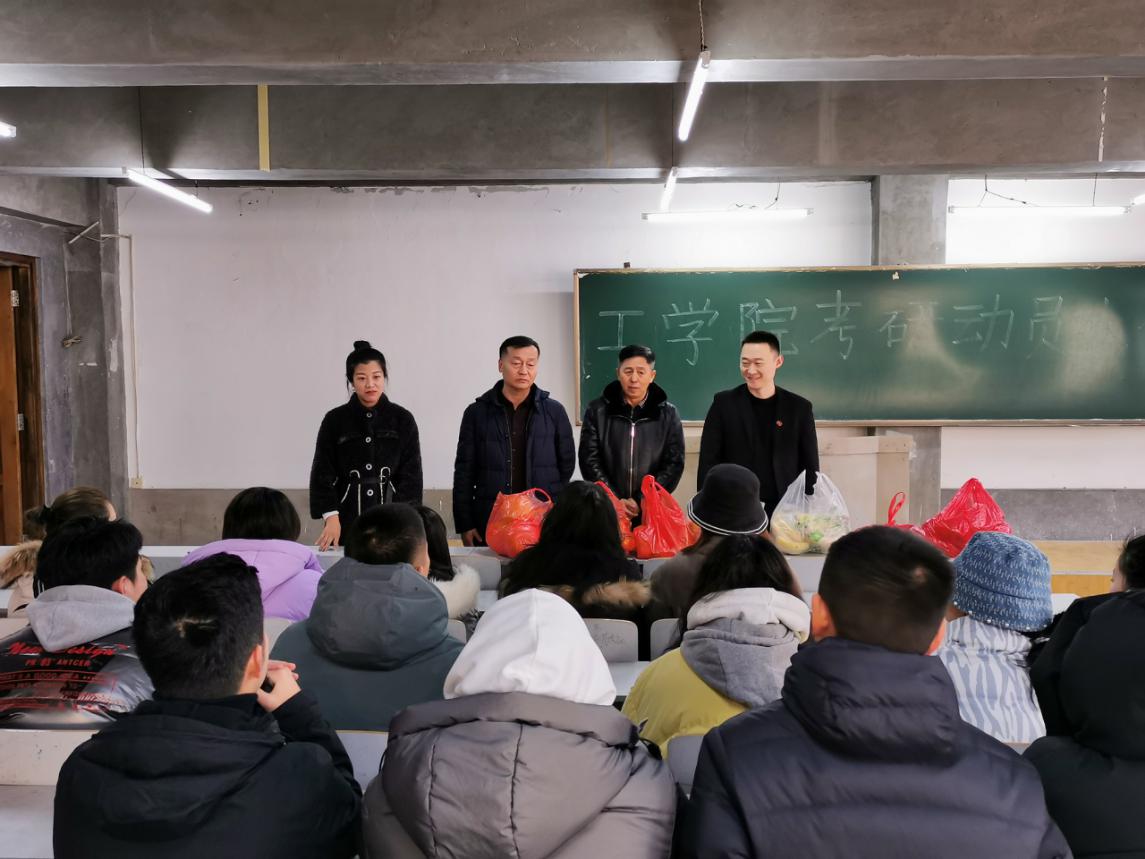 最后,学院领导、老师将带来的水果分发给备考学生,使得考研学子在寒冷的冬天里心中感觉到了学校和老师带来的暖暖关怀。考研学子们纷纷表示一定以积极向上的精神迎接考试,向梦想奋进,为人生发展积蓄更多的力量,为学院和学校增添更多的光彩。