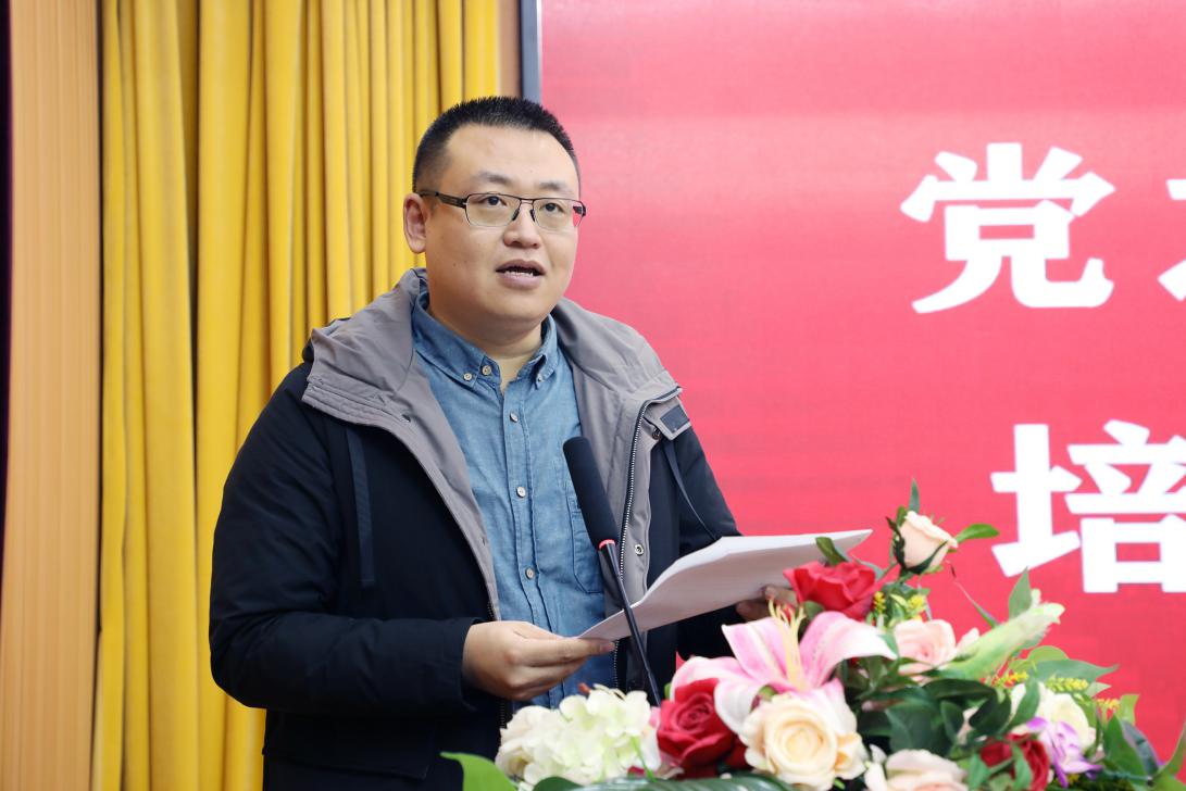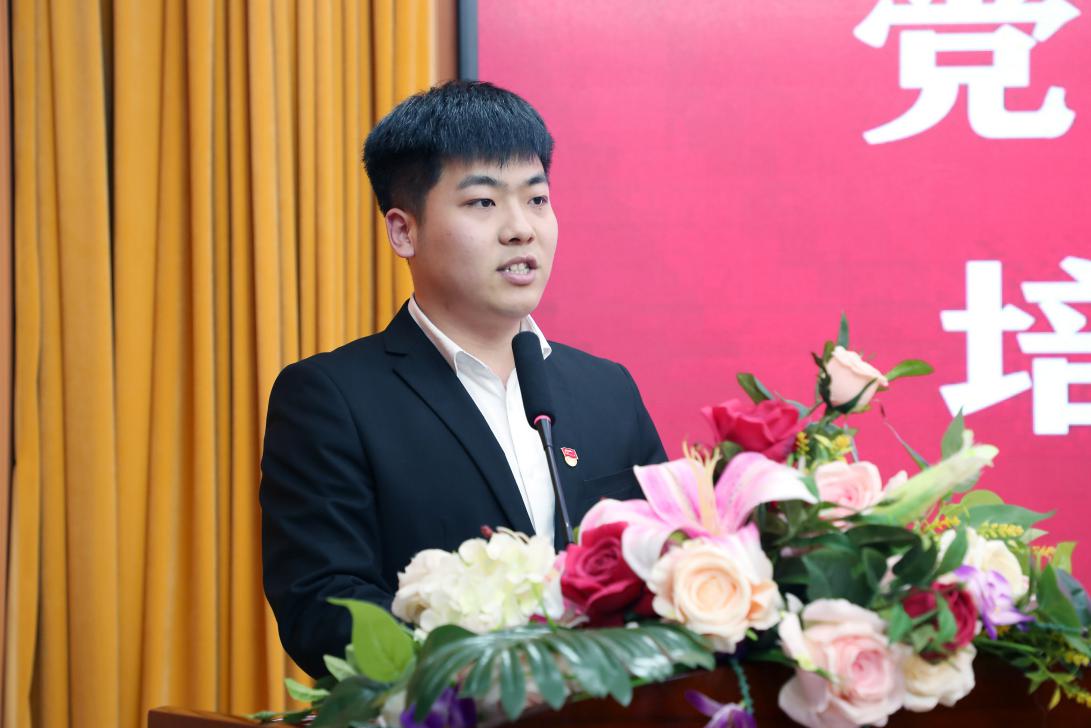 肖金强代表学生党员发言,他表示会用党的先进理论武装自己,在“党之匠心•国之工匠”导师团队的指导下取得更好的荣誉,不断为学院争光、为学校添彩。