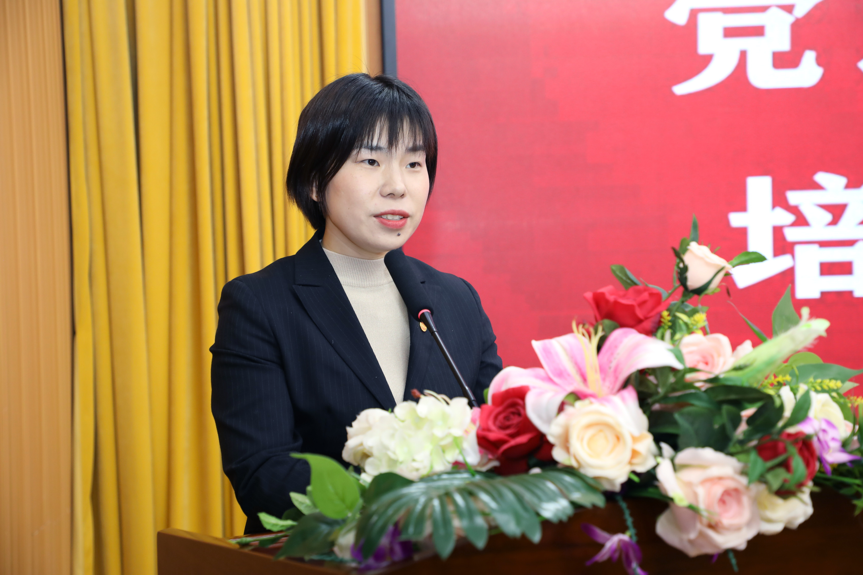 李露赢代表支部书记发言,她表示工学院院学生党支部将以“党之匠心•国之工匠”培育工程为平台扎实开展工作,不忘初心、牢记使命,培育学生工匠之心,提升学生工匠之能,打造学生工匠先锋,突出支部特色亮点,做大做强“党之匠心•国之工匠”党建项目特色品牌。