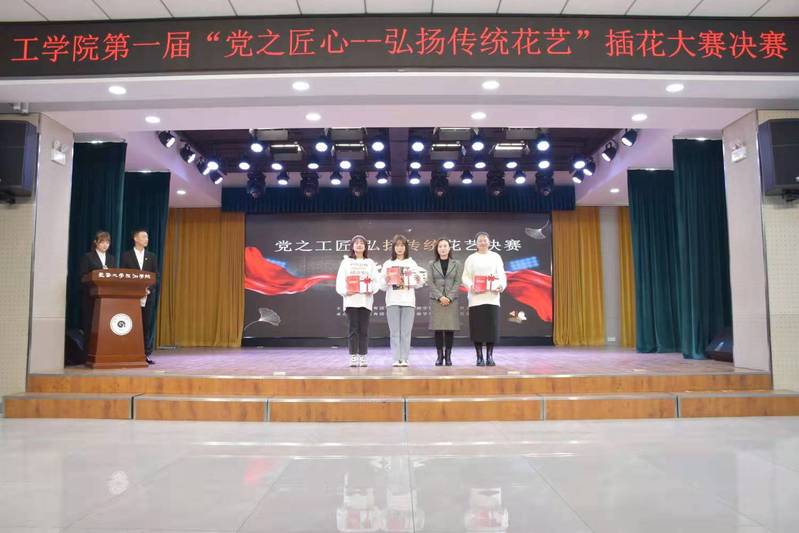 12月10日中午,我院第一届“党之匠心—弘扬传统花艺”插花大赛在大学生活动中心圆满落幕。金沙js9线路中心副校长赵莹、党委副书记、副校长马维东、我院院长李晓东教授、学院党总支书记凤龙、副院长高峰教授、团委书记奚亮、风景园林教研室全体老师及学院全体辅导员老师出席了本次颁奖典礼。