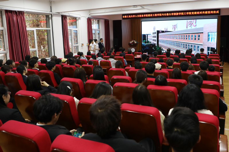 为深入贯彻落实新时代党的建设总要求,实现基层党组织优势互补、资源共享、共同发展的基层党建工作格局,4月27日下午,我院与长春工业大学人文信息学院建设工程学院“党建结对共建”签约仪式在金沙官网筑梦报告厅隆重举行,长春工业大学人文信息学院校长助理、党委组织部部长兼统战部部长贺同华,建设工程学院院长孙娜,建设工程学院党总支书记徐辉,建设工程学院团委书记杨光,建设工程学院教师党支部副书记、土木工程教研室主任王玉军,建设工程学院学生党支部书记原博婷;学校党委组织部部长兼统战部部长许乔木,工学院院长李晓东,党总支书记凤龙,副院长高峰,教工支部书记于凯,学生支部书记李露赢以及工学院党务干部、教师代表、学生代表,共120余人参加了活动,签约仪式由我院团委书记奚亮主持。