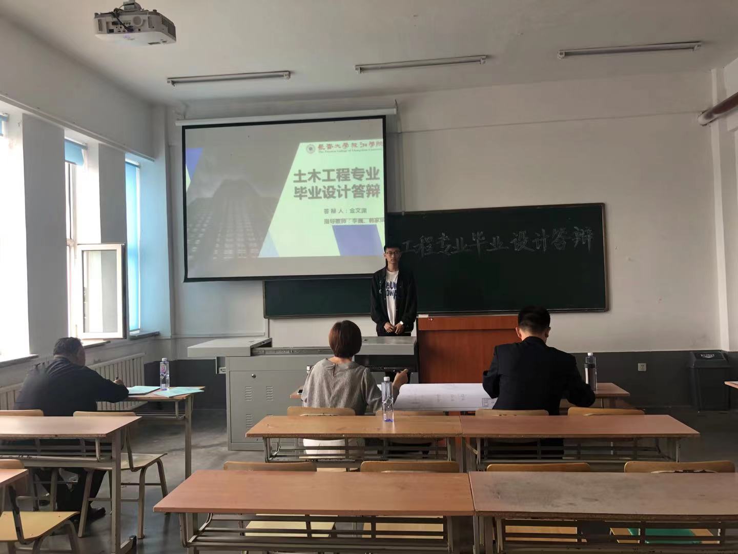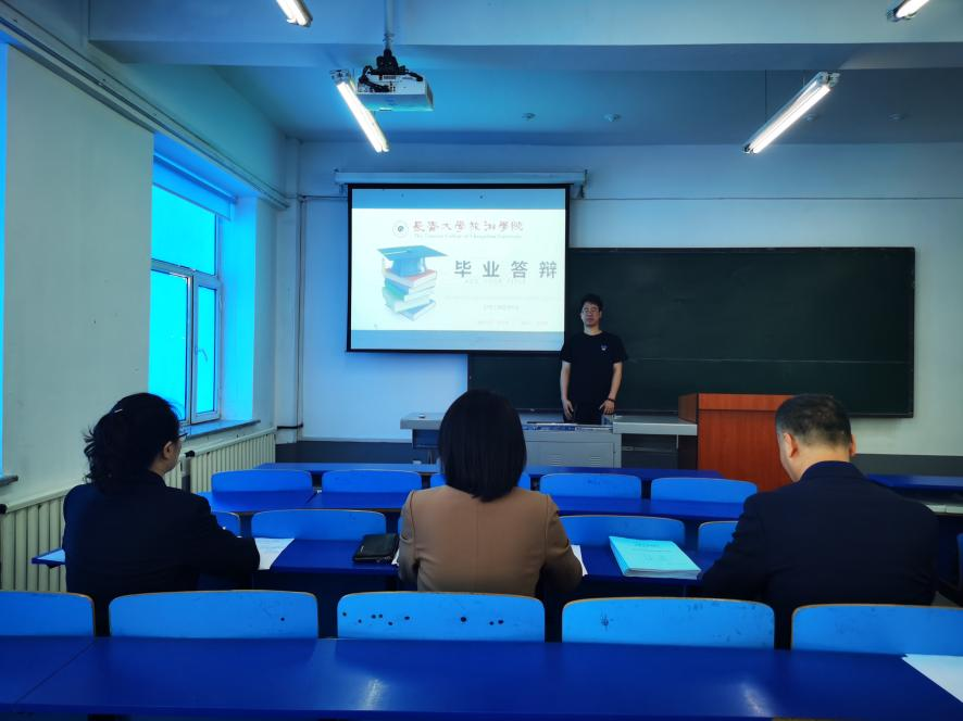 根据学校《2021届本科毕业论文答辩安排及要求》,答辩前,答辩组长组织答辩老师熟悉答辩流程并熟悉学生论文内容,方便提问。严格按照学校防疫工作要求,答辩教室提前做好消毒、通风工作。答辩教室悬挂条幅,室内环境整洁。答辩时,答辩组成员和毕业生均着正装,并全程安排拍照留存记录。各答辩小组确定通过答辩资格审查学生名单后,学生方可答辩。先由每一位学生简单介绍自己毕业论文(设计)的选题依据以及主要研究内容,然后答辩组教师从专业角度向学生提出问题和修改意见,学生有3-5分钟时间回答老师提出的问题,并对老师们提出的宝贵意见和建议虚心接受,答辩过程秩序井然,规范严谨。