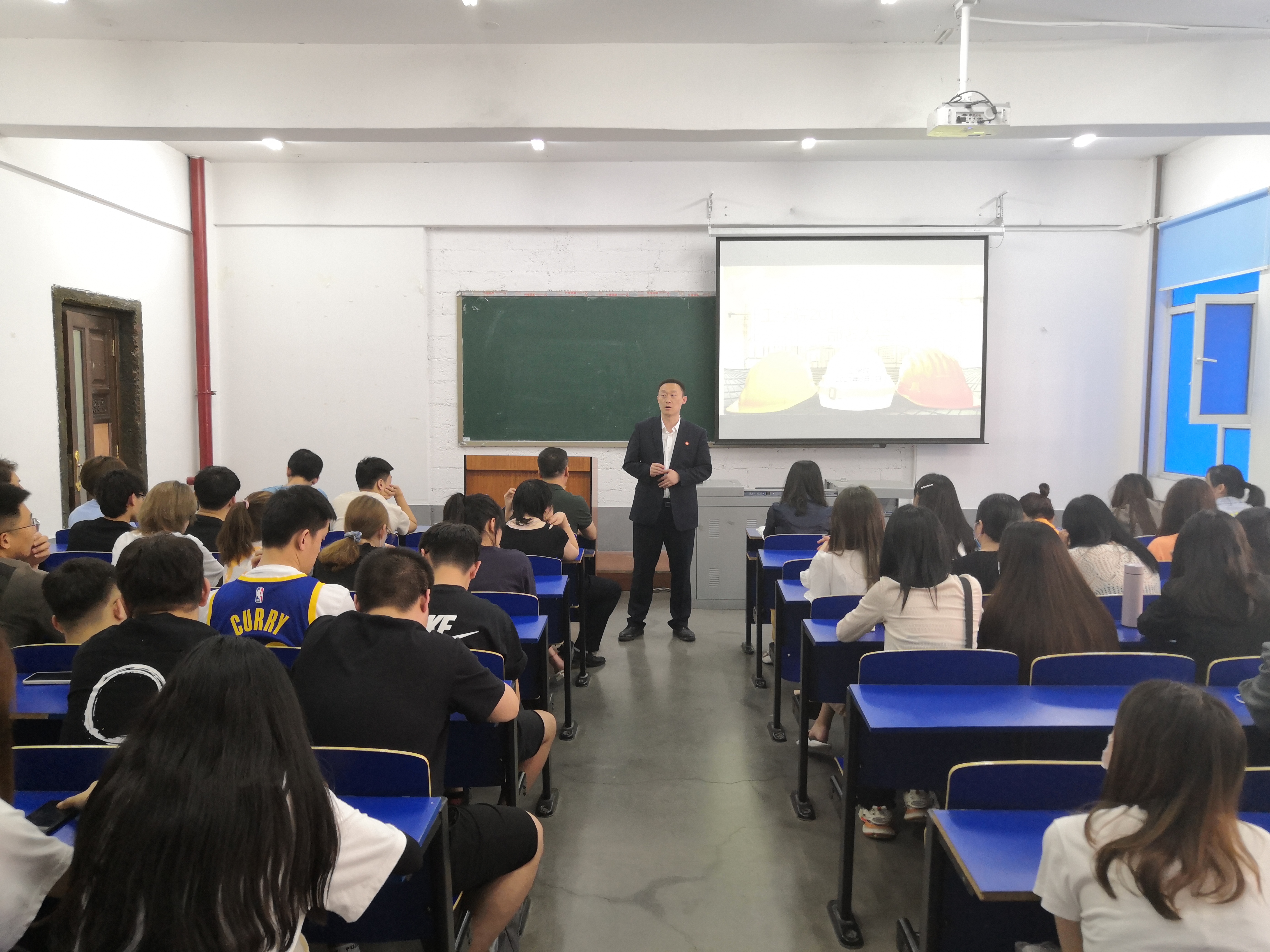 出席大会的有学院党总支书记凤龙,副院长高峰,辅导员于凯以及2018级全体学生。