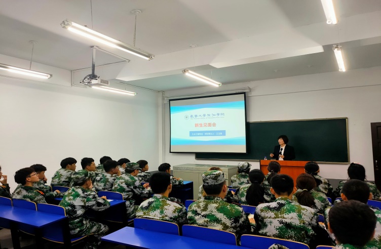 土木工程专业新生见面会由土木工程专业学科带头人王玉英副教授主持。首先王老师欢迎各位同学来到金沙js9线路中心,简单了解了学生的基本情况。王老师主要对专业未来前景、专业办学特色、专业课程内容、学生就业情况以及师资力量进行了介绍,让新生们对土木工程专业有了一定的了解。同时,王老师针对本专业课程体系简述了各课程的学习方法,并鼓励学生参加各项学科竞赛,发挥自己优势特长,锻炼个人综合能力。