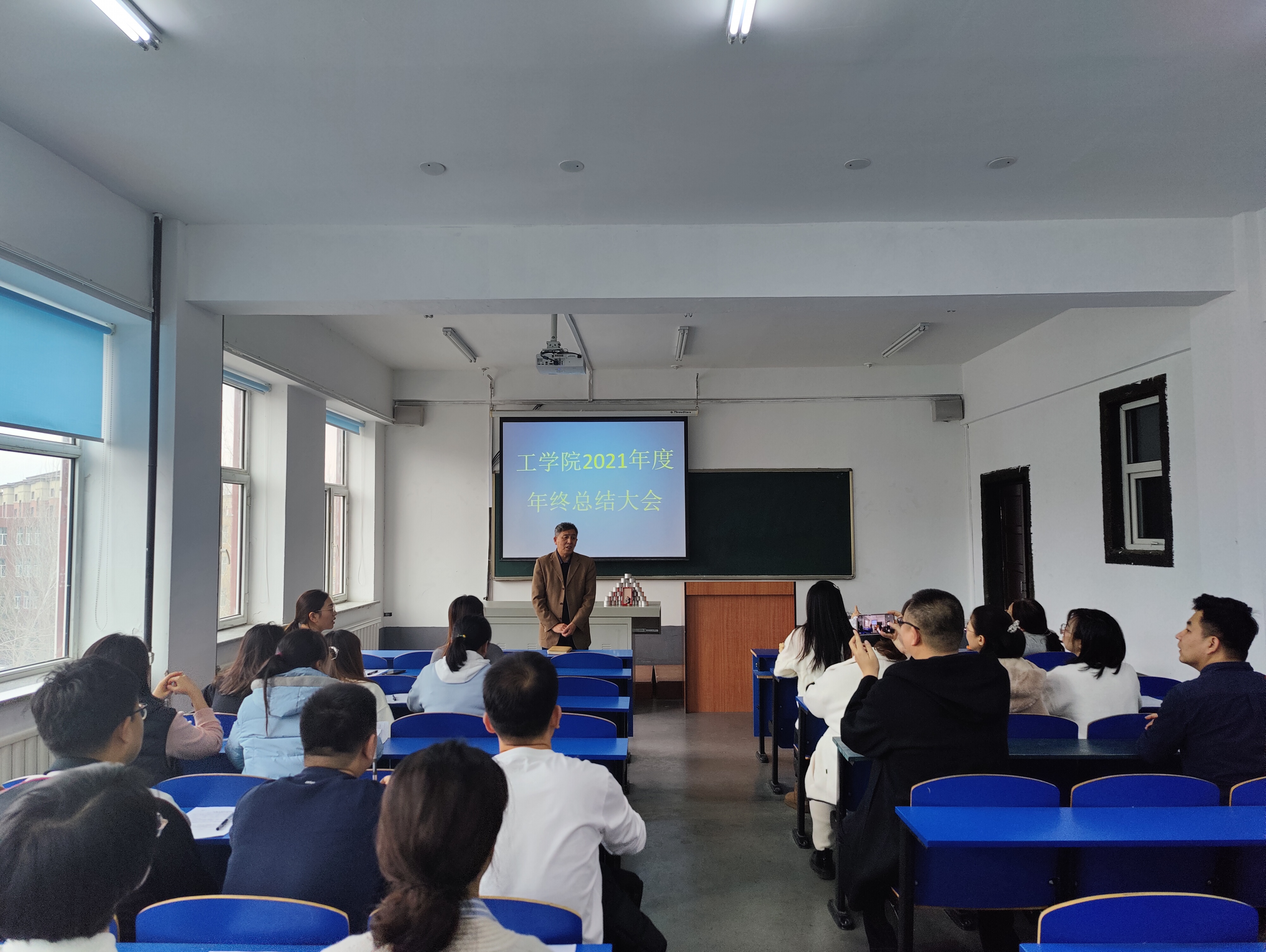 2021年12月9日工学院2021年度年终总结大会在教学楼332举行,院长李晓东,学院党总支书记凤龙,副院长高峰、各专业带头人及全体教职工参加会议,会议由李晓东主持。