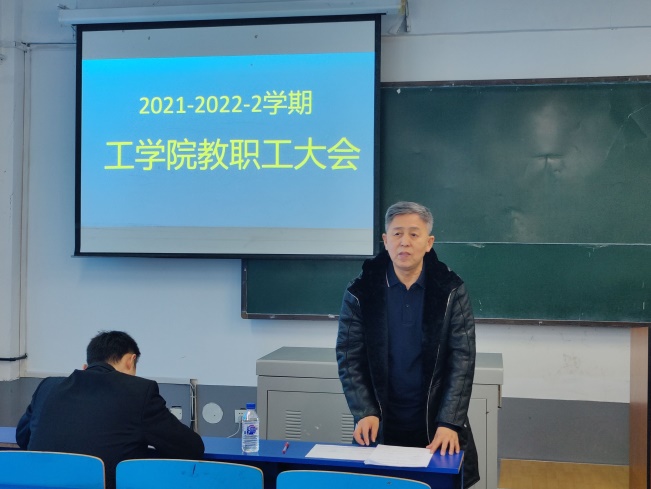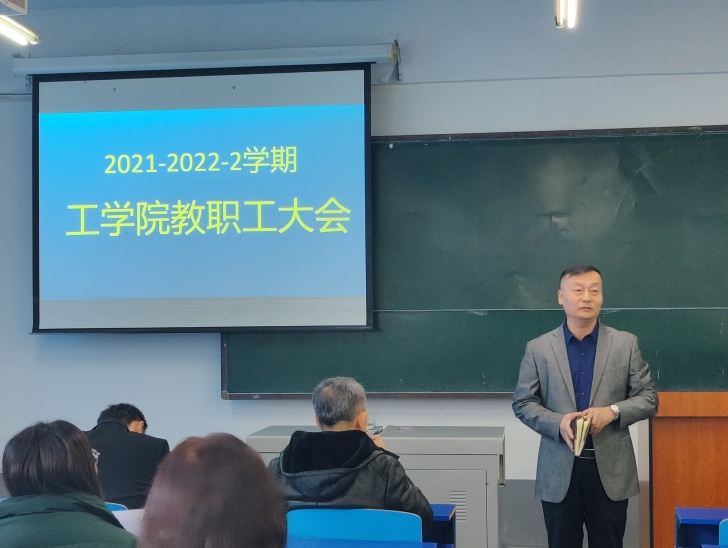 2022年2月26日(星期六)在教学楼415召开了工学院2021-2022-2学期教师大会,会议由李晓东主持,学院党总支书记、副院长、专职教师及外聘教师参加。