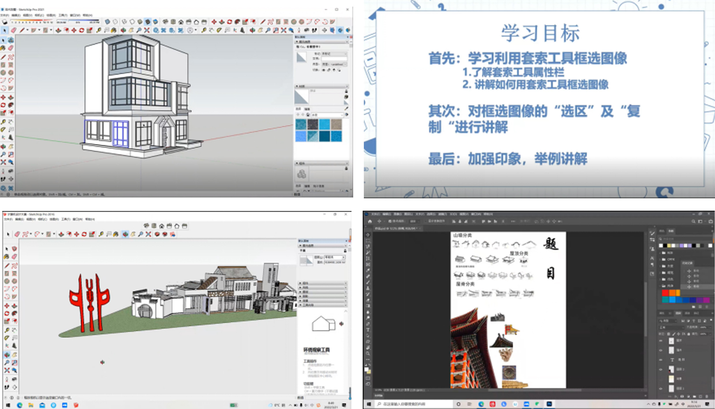 张会的授课课程都是实践操作性较强的课程,要求学生有较强的动手能力和创新思维,例如:《文创类建筑专项设计》、《旅游建筑设计原理》课程,这就给网络教学带来了一定难度。因此,她根据课程实际情况,制定了相应的教学设计和实践活动主题,希望通过一系列的教育教学活动,教会同学们专业知识的同时,帮助同学们树立正确的世界观、人生观、价值观。