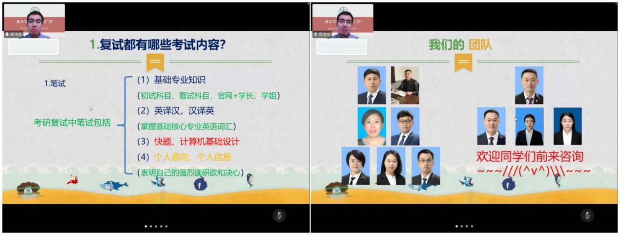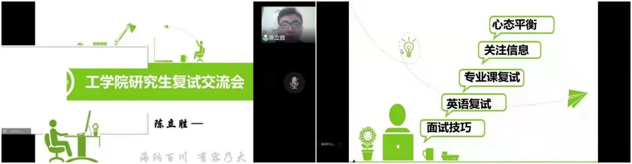 陈立胜从复试材料准备、备考方向、面试环节注意事项等方面,提供了进一步的专业指导,并提醒同学们注重线上交流礼仪。