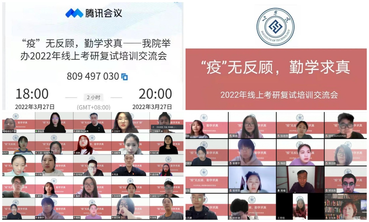 疫情不断考研路,线上辅导来帮助。为最大程度减少新冠肺炎疫情对我院2022届毕业生考研复试产生的不利影响,切实为学生考研复试提供精准指导,工学院于3月27日通过腾讯视频会议举办了“‘疫’无反顾,勤学求真”—2022年线上考研复试培训交流会。院长李晓东、党总支书记凤龙、副院长高峰、团委书记奚亮,土木工程专业学科带头人王玉英,建筑学专业学科带头人董峻岩,风景园林专业学科带头人武术杰,工程管理专业学科带头人张求书,风景园林专业教研室主任邢世通,风景园林专业老师郑浩东,建筑学专业老师陈立胜,2019级辅导员刘畅,2021级辅导员侯云艳以及27名考研进入复试的同学参加了本次活动。