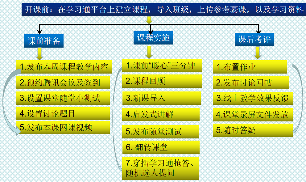 准备签到签退活动,预约腾讯会议。提前设置随堂小测试、课堂讨论、抢答、随机选人环节保存在学习通上。