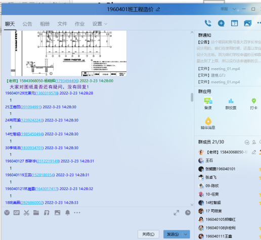 QQ群资料准备:按照上课的班级,建立QQ群。QQ群文件上传课程图纸、课程PPT课件以及工程造价软件安装程序以及安装方法等文件。