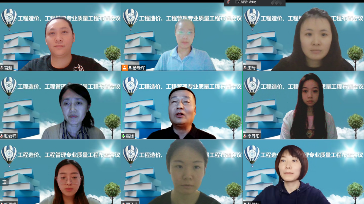 质量工程项目是引导教师转变教育教学理念,深化教育教学改革的方向标;是创新人才培养模式,建设高水平应用型大学的助推器。为此,5月16日晚20:00,工程造价、工程管理专业利用腾讯会议平台,联合召开质量工程项目布置会,副院长高峰、工程管理专业带头人张求书、工程造价专业教研室主任杨晓辉以及工程造价、工程管理专业全体教师参加了此次会议。