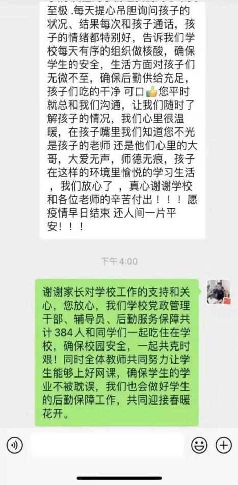 为了让所有学生家长能够更快更直接地了解当前学院以及师生的整体情况,让家长们安心、放心,自疫情发生以来,我院就积极搭建家校微信互通平台,通过深入开展家长课堂共同合力守护学生健康,为切实打赢疫情防控阻击战贡献力量。通过微信及时地将学校和本学院疫情防控的情况向家长予以介绍。