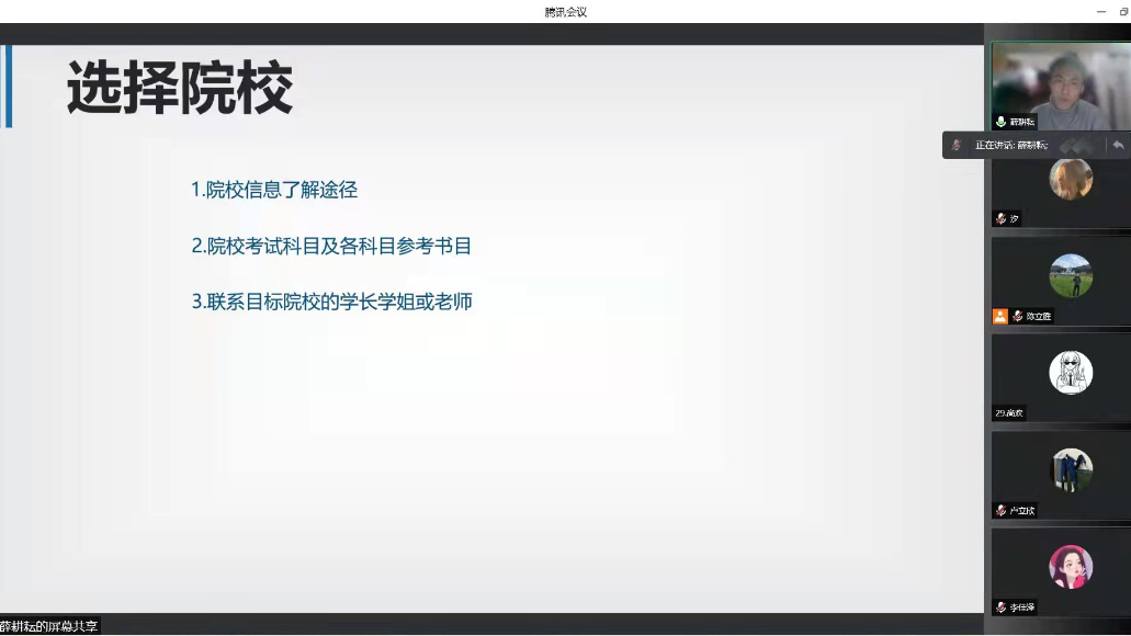 俗话说,知己知彼,百战百胜。此次“停课不停学教学沙龙”考研讲座的举办,在一定程度上为同学们指明了学习的方向,提供了与考研相关的信息,使同学们应对考研时能做出更准确的判断。考研的路途充满了艰辛和汗水,但结果会是快乐的,生命中的每段旅程都有着不同的颜色,祝每个为梦想执着的同学,都能在奔跑的终点收获成功。