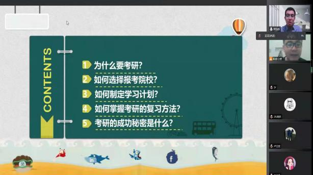 紧接着,郑浩东老师对如何报考院校,如何制定学习计划和如何掌握考研复习方法进行了详细讲解。最后他表示,在考研阶段坚持才是成功上岸的秘诀。