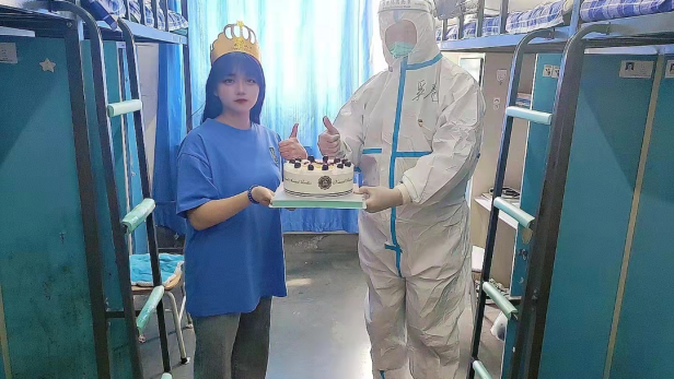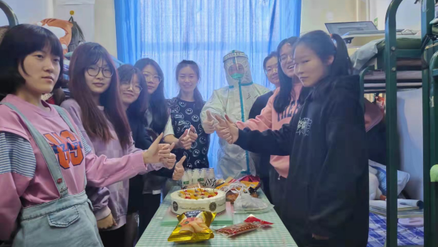 在这一特殊时期,奚老师还特意为每一名过生日的同学准备了生日蛋糕,在学院的关怀与祝福下,同学们倍感温暖。他从疫情开始以来,入驻校内集中办公、每日摸排学生身心状况、组织核酸检测、谈心谈话、用自己的实际行动诠释着辅导员的使命和担当。将硬核抗疫和温馨防疫相结合,为学生守好“责任田”,以身作则在“疫”线!