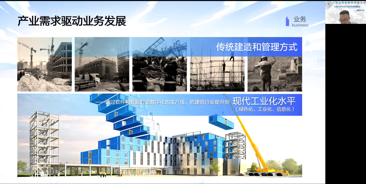 此次招聘会,张茂先生通过腾讯会议屏幕共享PPT的方式对广联达科技股份有限公司的基本情况作了介绍,同时也对此次招聘岗位以及职业发展路线进行了详细讲解。张茂表示广联达公司不仅拥有年轻化团队、全产业职业发展平台和多轨道职业发展通道,还有完善的薪酬福利制度和人才培养体系。随后,他针对同学们提出的相关问题做了详细解答。整场招聘宣讲会有序、互动、高效。