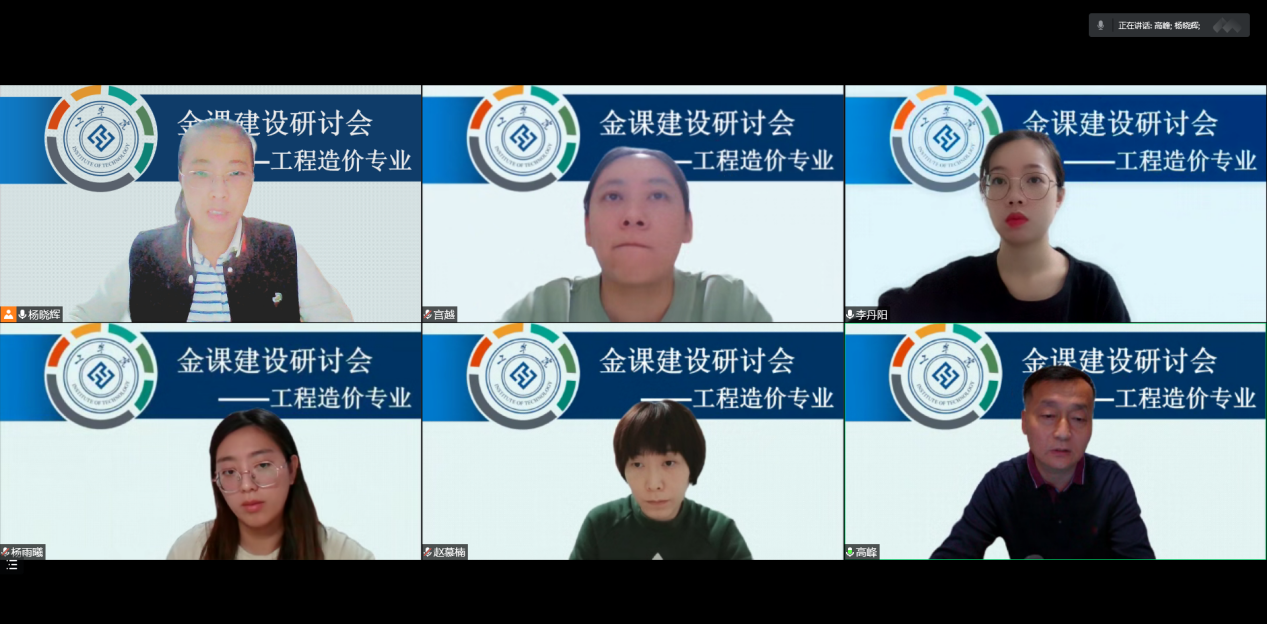 为保证《工程计量与计价》“金课”建设项目顺利完成,工程造价教研室于9月6日召开“金课”建设线上研讨会,会议由教研室主任杨晓辉主持,学科带头人高峰教授以及专职教师宫越、李丹阳、杨雨曦、赵慕楠参加了本次会议。